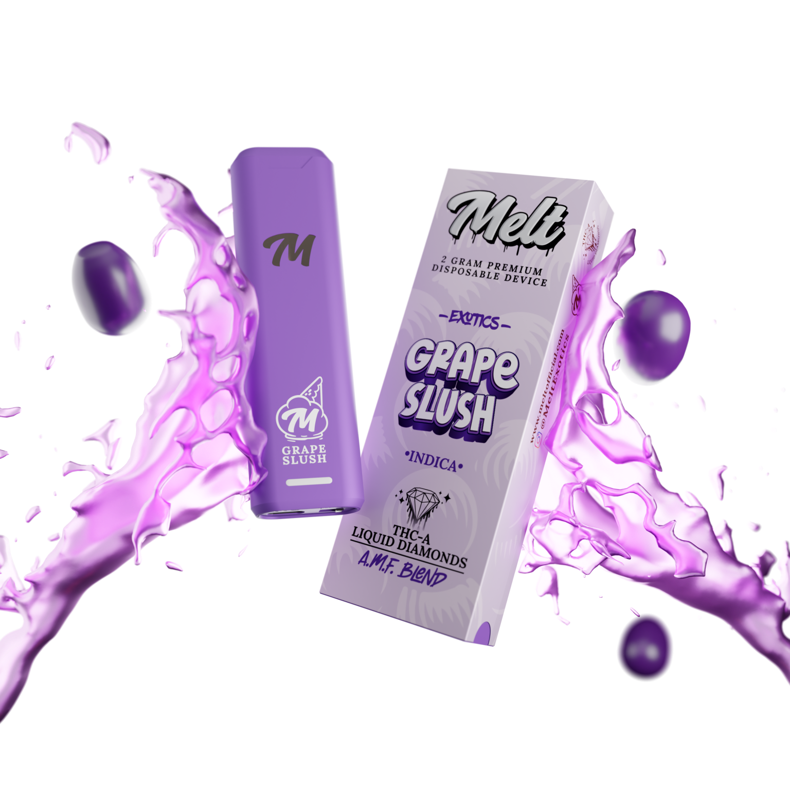 Melt Exotic 2g Grape Slush AMF THCA Blend disposable offers a flavorful, potent indica experience in a convenient package. Its unique flavor, combined with advanced blend technology, makes it a standout option for those seeking quality, ease, and relaxation in their vape sessions.